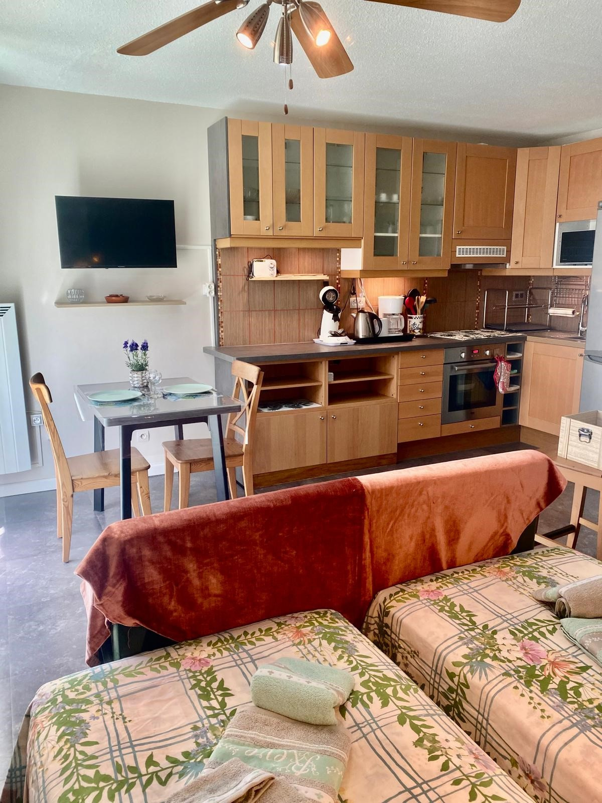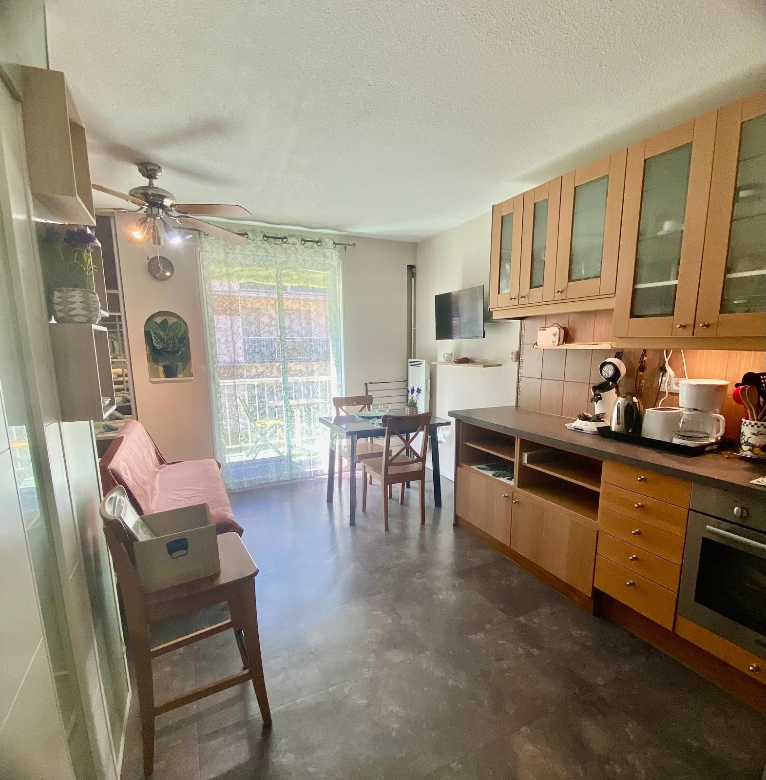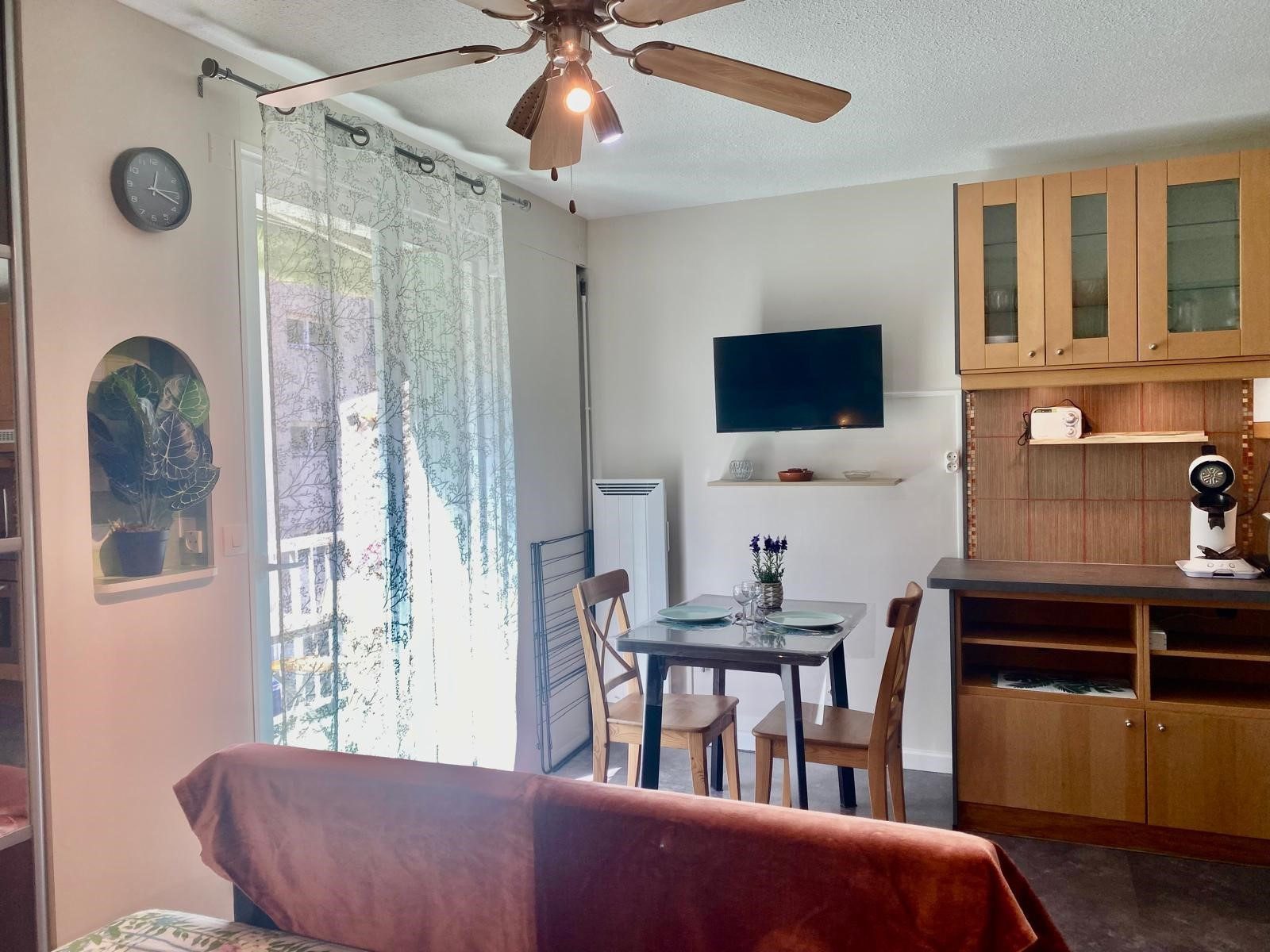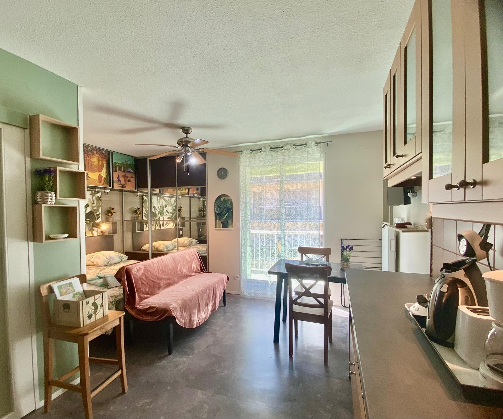 LM105 - Rés. Marie-Eugénie- Bât B - n°38- 3e étage Studio prévu pour 2 personnes d'environ 23 m² - Balcon au sud - Chauffage individuel électrique - WIFI Situé à 200 m des cures - 50 m du centre ville - meublé classé 3 étoiles LINGE DE MAISON COMPRIS DANS LE PRIX (DRAPS, SERVIETTES...) DESCRIPTIF : - ENTREE : miroir - placard de rangement - commode - boîte à clefs - escabeau - caddy - aspirateur - COIN CUISINE EQUIPEE : évier - réfrigérateur/congélateur - ustensiles usuels - 3 plaques à induction - hotte aspirante - bouilloire - four - micro-ondes - grille-pain - éléments de rangement - autocuiseur - cafetière électrique - 1 table + 2 chaises - 1 table - 2 chaises - COIN SEJOUR/CHAMBRE : armoire:penderie - lit en 140 - 2 chevets + 2 lampes - horloge - plante - 2 fauteuils osier - TV écran/plat - lecteur DVD - séchoir à linge - radiateur/pied - ventilateur - SALLE D'EAU : douche - armoire avec vasque - lave-linge - meuble de rangement - 1 poubelle - W.C - sèche-cheveux - W.C : meuble balcon : 5m² avec salon de jardin ( 2 tables - 2 chaise et 2 relax ) store banne Emplacement de parking (compris dans le prix (Avenue général de Gaulle)) ou à 200 m à l 'extérieur emplacement privatif devant le 65 avenue du vallespir Caution: 180€ à régler sur place à l'arrivée. Tarif semaines : Novembre à Mars : 230€ Avril à Mai : 260€ Juin : 265€ et Octobre : 290€ Juillet à Septembre : 290 € - Réduction de 10% sur 2 semaines - Réduction de 15% sur 3 semaines