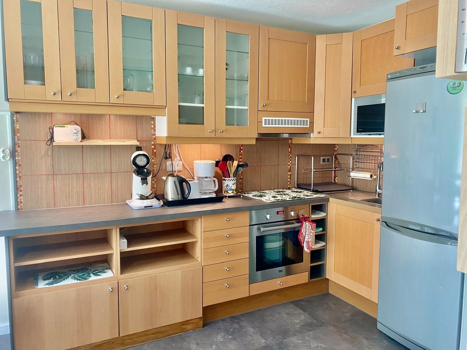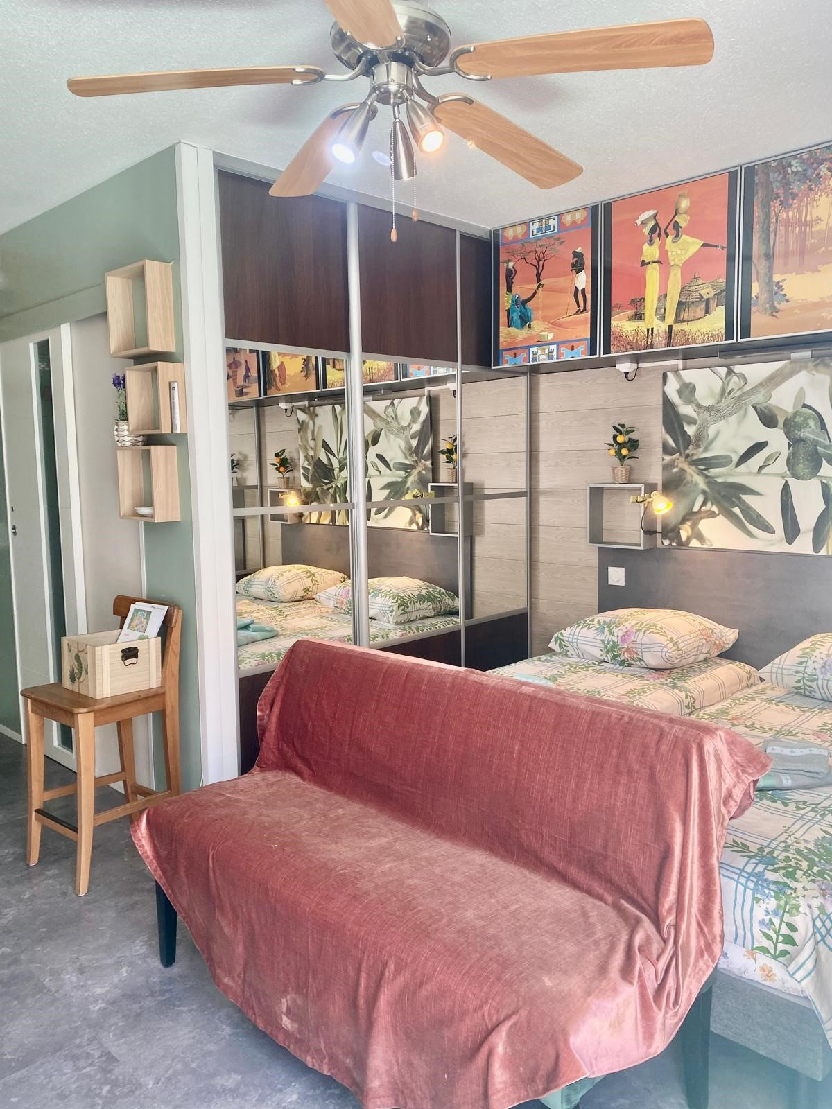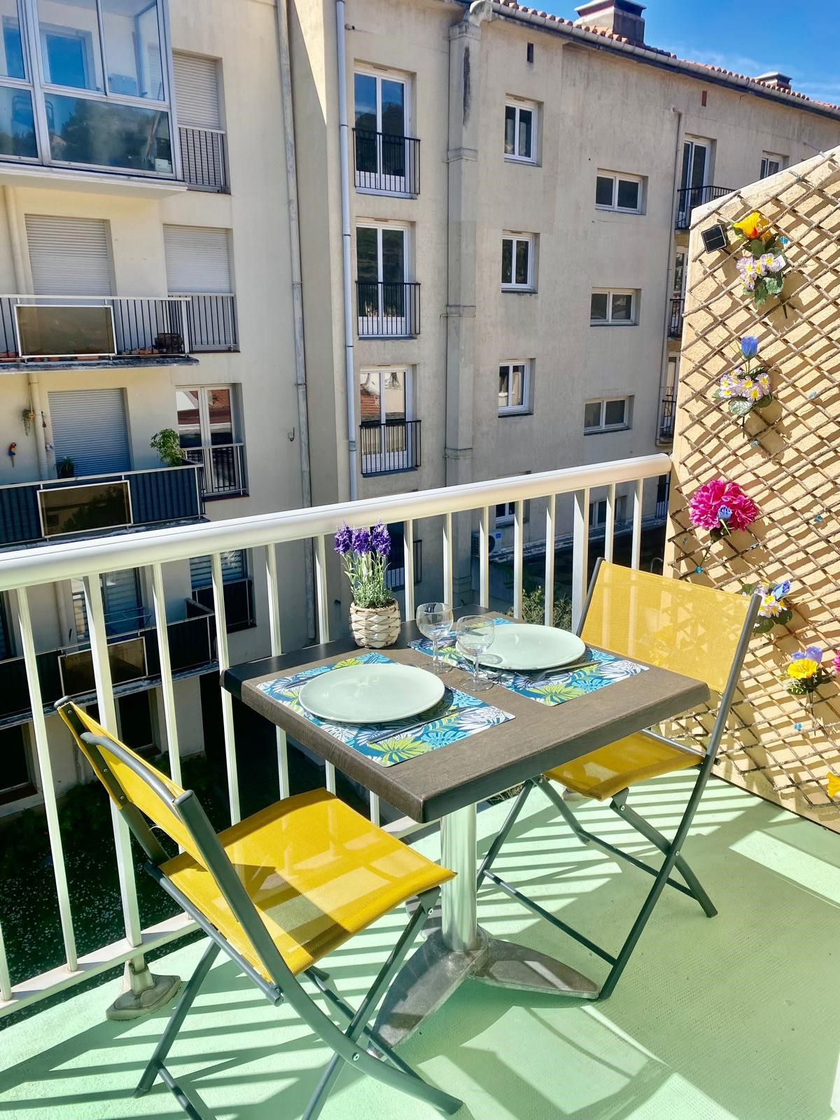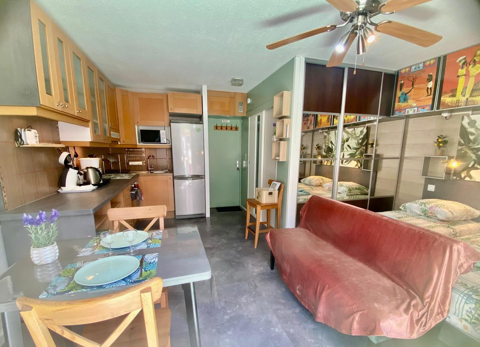 LM105 - Rés. Marie-Eugénie- Bât B - n°38- 3e étage Studio prévu pour 2 personnes d'environ 23 m² - Balcon au sud - Chauffage individuel électrique - WIFI Situé à 200 m des cures - 50 m du centre ville - meublé classé 3 étoiles LINGE DE MAISON COMPRIS DANS LE PRIX (DRAPS, SERVIETTES...) DESCRIPTIF : - ENTREE : miroir - placard de rangement - commode - boîte à clefs - escabeau - caddy - aspirateur - COIN CUISINE EQUIPEE : évier - réfrigérateur/congélateur - ustensiles usuels - 3 plaques à induction - hotte aspirante - bouilloire - four - micro-ondes - grille-pain - éléments de rangement - autocuiseur - cafetière électrique - 1 table + 2 chaises - 1 table - 2 chaises - COIN SEJOUR/CHAMBRE : armoire:penderie - lit en 140 - 2 chevets + 2 lampes - horloge - plante - 2 fauteuils osier - TV écran/plat - lecteur DVD - séchoir à linge - radiateur/pied - ventilateur - SALLE D'EAU : douche - armoire avec vasque - lave-linge - meuble de rangement - 1 poubelle - W.C - sèche-cheveux - W.C : meuble balcon : 5m² avec salon de jardin ( 2 tables - 2 chaise et 2 relax ) store banne Emplacement de parking (compris dans le prix (Avenue général de Gaulle)) ou à 200 m à l 'extérieur emplacement privatif devant le 65 avenue du vallespir Caution: 180€ à régler sur place à l'arrivée. Tarif semaines : Novembre à Mars : 230€ Avril à Mai : 260€ Juin : 265€ et Octobre : 290€ Juillet à Septembre : 290 € - Réduction de 10% sur 2 semaines - Réduction de 15% sur 3 semaines