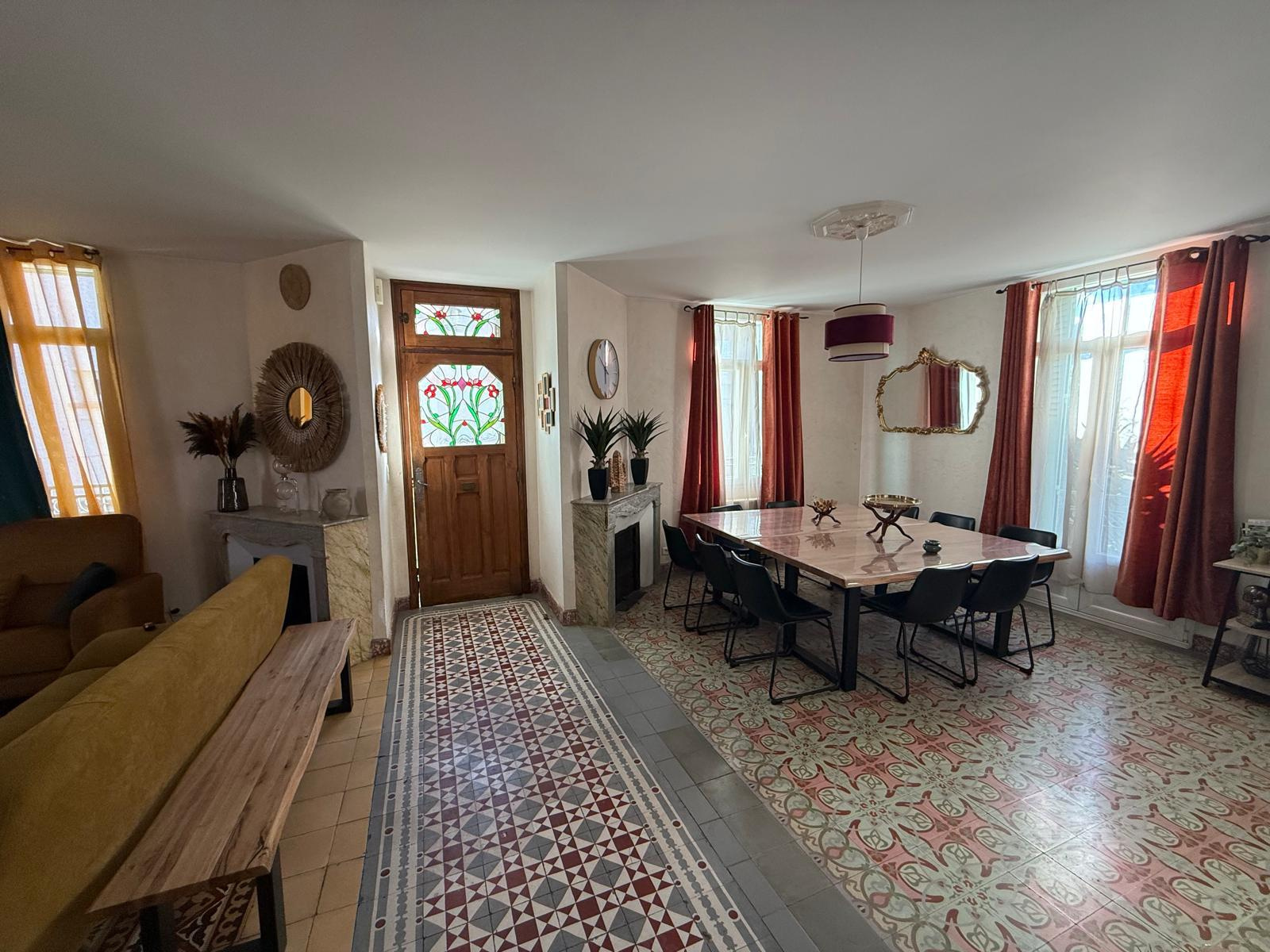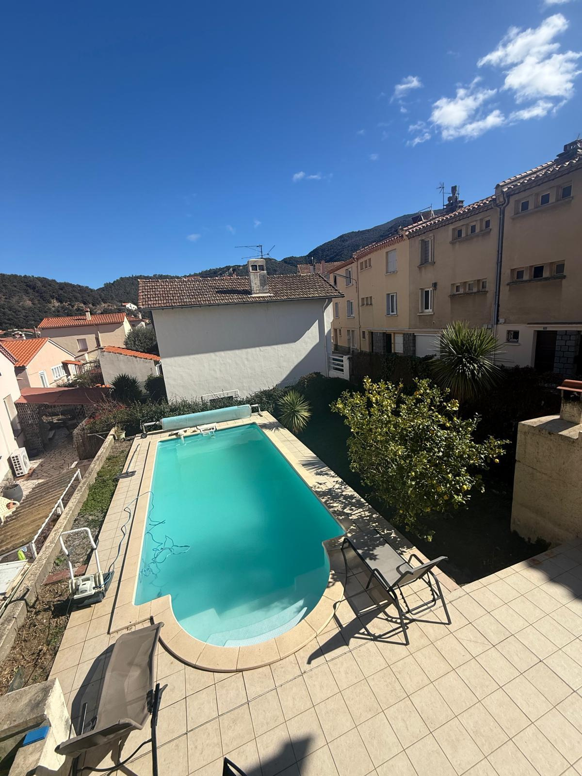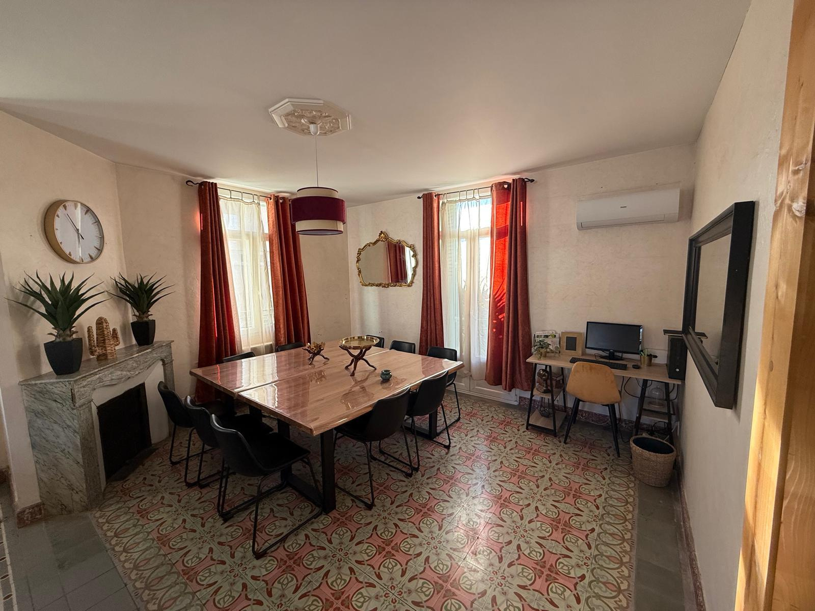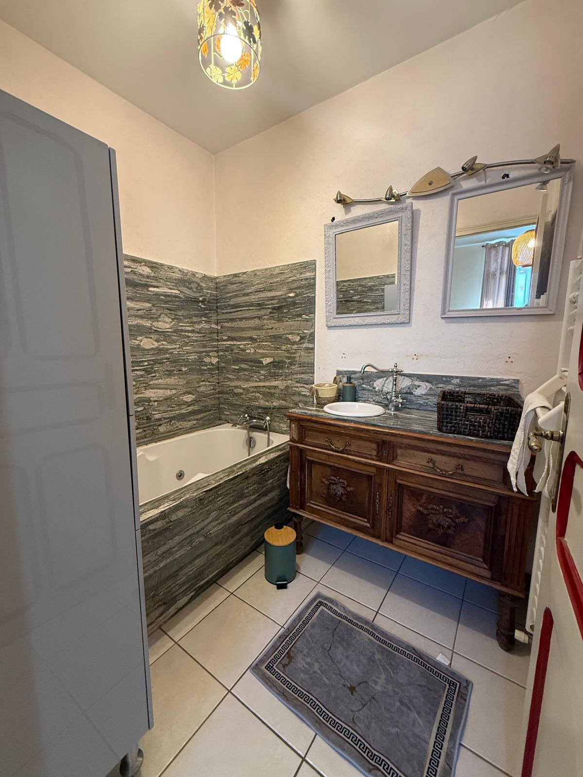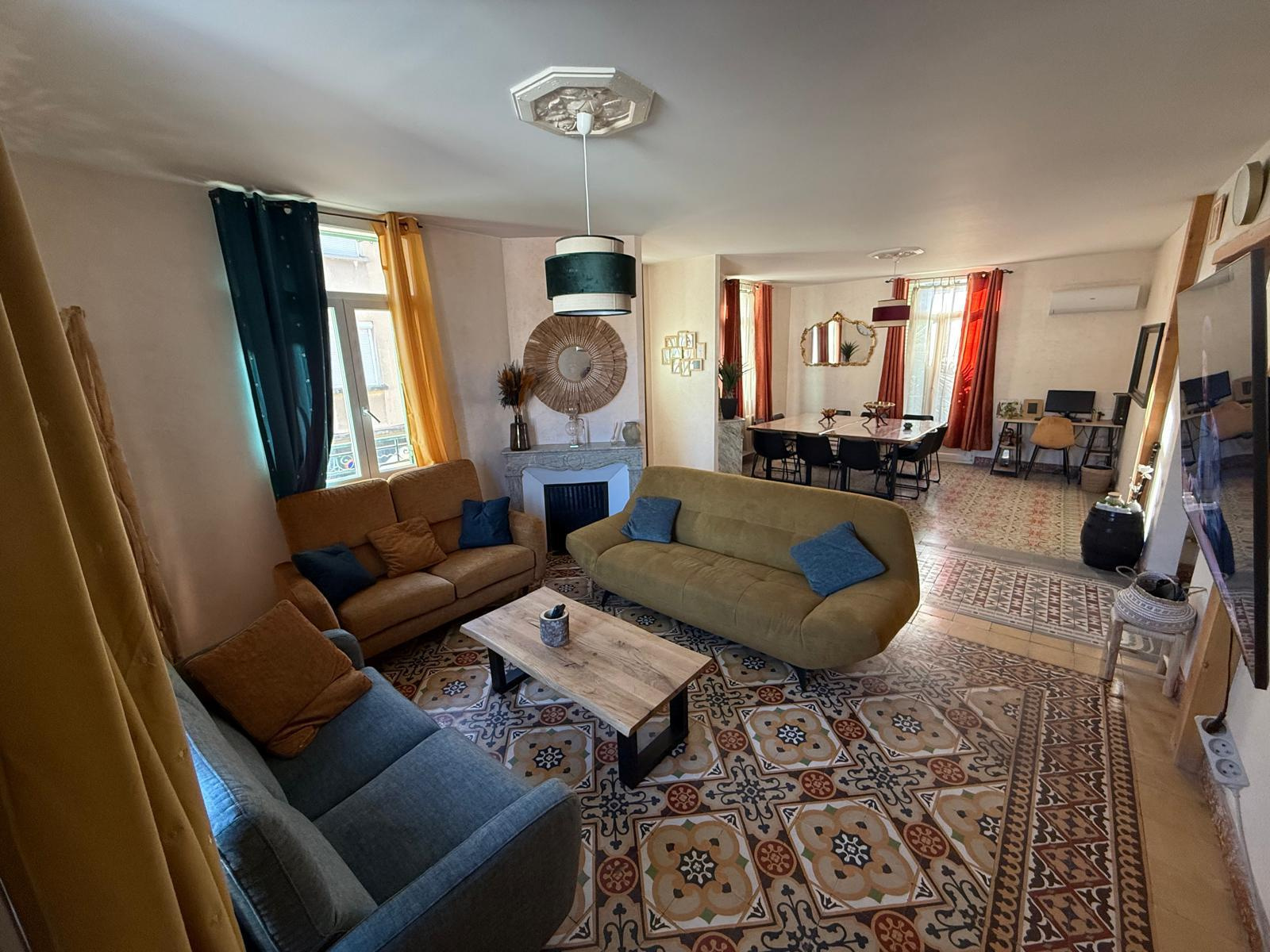 LM145 - 52 rue Joseph Coste -1er étage - 66110 Amélie les bains Appartement de type F4 climatisé 'environ 100m2 dans une maison, équipé et meublé avec garage pour 8 personnes, dans le centre ville. terrasse et barbecue DESCRIPTIF : COIN SALLE A MANGER : 1 grande table - 10 chaises - 1 miroir - 2 cheminées - 1 horloge COIN SALON : 3 canapés - table basse - TV grand écran - 1 tabouret - 2 ventilateurs sur pieds - 1 banc - 1 horloge - miroir - tapis de sol - éléments de décorations CUISINE : réfrigérateur + congélateur - lave vaisselle - grille pain - bouilloire - autocuiseur - micro onde - machine à café électrique - four - lave linge - haute aspirante - cuisinière au gaz - horloge - poubelle - rangements - aspirateur CHAMBRE 1 : lit en 160 - 2 chevets - penderie - TV + meuble - chauffage d'appoint - cheminé décorative - chaise haute SALLE DE BAINS : baignoire - placards - meuble vasque avec 2 miroirs WC séparé A L'ETAGE CHAMBRE MANSARDEE 1 : velux - 1 lit en 140 - 1 chevet - 1 lampe CHAMBRE MANSARDEE 2 : velux - TV - 4 lits en 90 SALLE D'EAU : sèche serviette - lavabo avec miroir WC séparé GARAGE Animaux autorisés sans supplément Caution: 300 € à régler sur place à l'arrivée. forfait charges en supplément 40€ Tarif semaines : Novembre à Mars : 300€ Avril à Mai : 600€ Juin : 800€ et Octobre : 800€ Juillet à Septembre : 1000€ - Réduction de 10% sur 2 semaines - Réduction de 15% sur 3 semaines Prestations optionnelles à régler sur place et à réserver avant votre arrivée: Ménage appartement: 60 € Draps lit double: 20€ Drap lit simple:12€ Kit serviettes 1 pers:8€ Kit serviettes 2 pers:12€