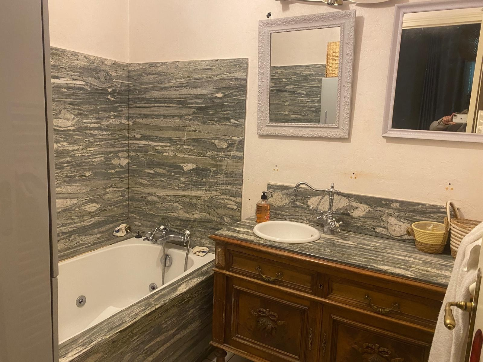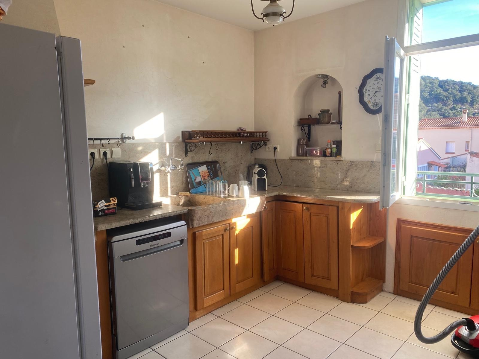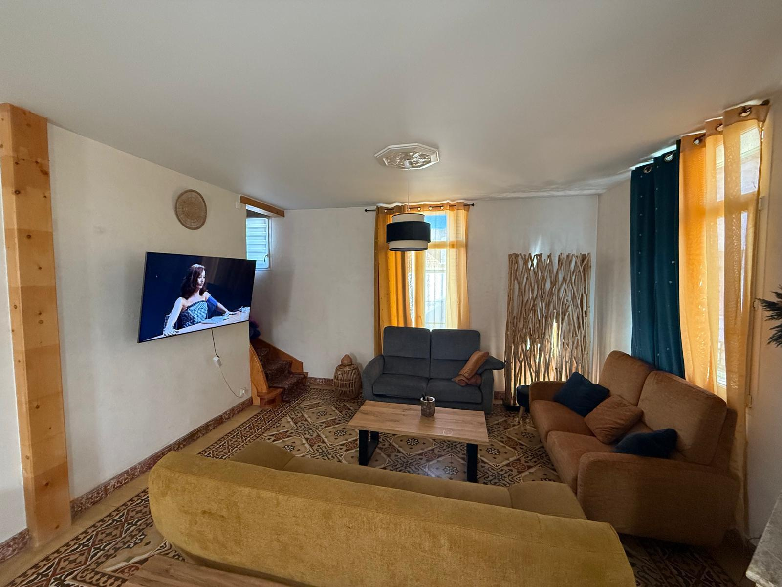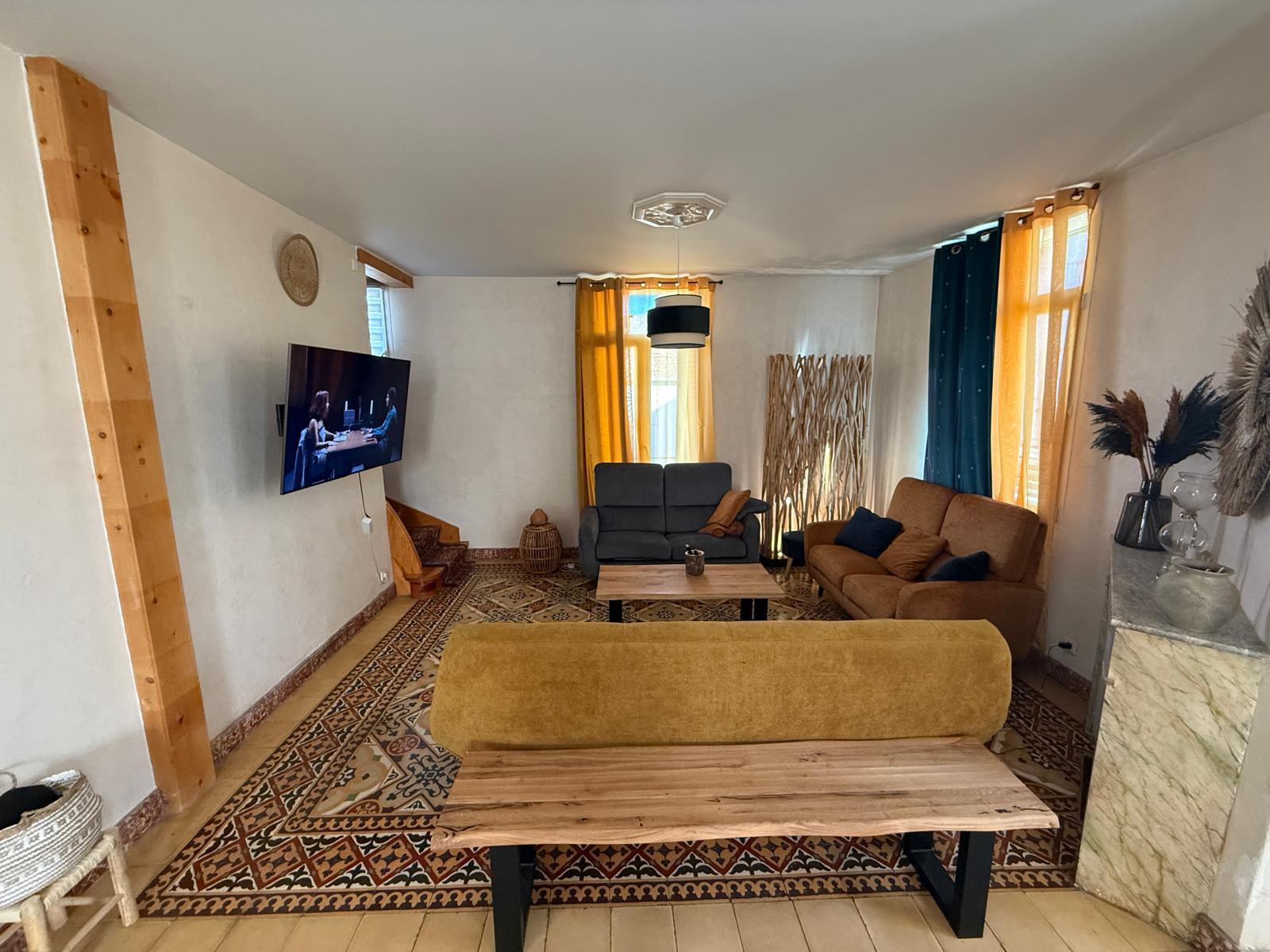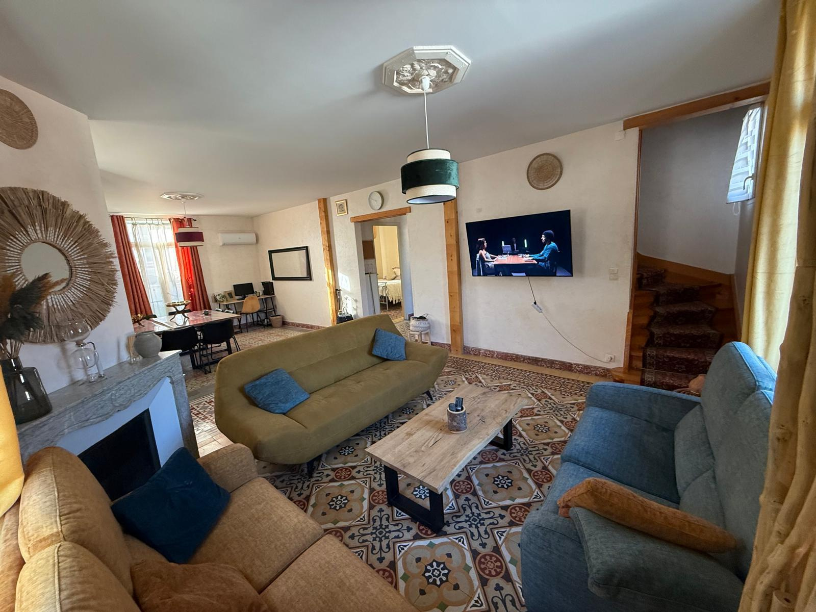 LM145 - 52 rue Joseph Coste -1er étage - 66110 Amélie les bains Appartement de type F4 climatisé 'environ 100m2 dans une maison, équipé et meublé avec garage pour 8 personnes, dans le centre ville. terrasse et barbecue DESCRIPTIF : COIN SALLE A MANGER : 1 grande table - 10 chaises - 1 miroir - 2 cheminées - 1 horloge COIN SALON : 3 canapés - table basse - TV grand écran - 1 tabouret - 2 ventilateurs sur pieds - 1 banc - 1 horloge - miroir - tapis de sol - éléments de décorations CUISINE : réfrigérateur + congélateur - lave vaisselle - grille pain - bouilloire - autocuiseur - micro onde - machine à café électrique - four - lave linge - haute aspirante - cuisinière au gaz - horloge - poubelle - rangements - aspirateur CHAMBRE 1 : lit en 160 - 2 chevets - penderie - TV + meuble - chauffage d'appoint - cheminé décorative - chaise haute SALLE DE BAINS : baignoire - placards - meuble vasque avec 2 miroirs WC séparé A L'ETAGE CHAMBRE MANSARDEE 1 : velux - 1 lit en 140 - 1 chevet - 1 lampe CHAMBRE MANSARDEE 2 : velux - TV - 4 lits en 90 SALLE D'EAU : sèche serviette - lavabo avec miroir WC séparé GARAGE Animaux autorisés sans supplément Caution: 300 € à régler sur place à l'arrivée. forfait charges en supplément 40€ Tarif semaines : Novembre à Mars : 300€ Avril à Mai : 600€ Juin : 800€ et Octobre : 800€ Juillet à Septembre : 1000€ - Réduction de 10% sur 2 semaines - Réduction de 15% sur 3 semaines Prestations optionnelles à régler sur place et à réserver avant votre arrivée: Ménage appartement: 60 € Draps lit double: 20€ Drap lit simple:12€ Kit serviettes 1 pers:8€ Kit serviettes 2 pers:12€