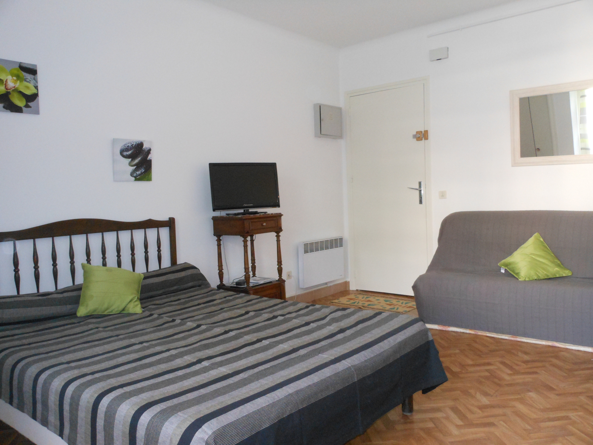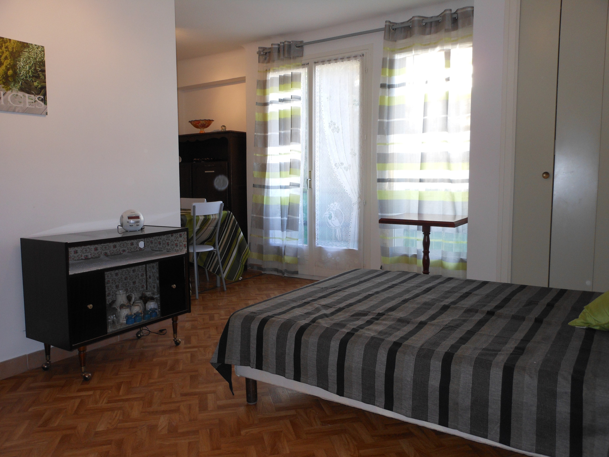 Résidence des Thermes - Bat C4 - Apt n°135 - 4e étage - 6, Rue du Parc Studio de 28m² environ pour 2 personnes - Ascenseur - Exposition Est - Chauffage individuel électrique - WIFI SItué à 50m des thermes et à 100m des commerces DESCRIPtIF : COIN SEJOUR CHAMBRE : 1 lit en 140 - 1 chevet +1 lampe - meuble tv +écran plat - guéridon - canapé convertible - table et fer à repasser - aspirateur. COIN CUISINE : table + 4 chaises - 1 buffet - 1 évier - 1 réfrigrateur TOP - rangements haut et bas - plaques vitrocéramiques - four - micro-ondes - cafetière électrique - ustensiles usuels - poubelle SALLE D'EAU : douche à l'italienne - lavabo - poubelle - lave-linge WC séparés DEPOT DE GARANTIE : 180 euros à verser à la prise des cléfs avec le solde de location.