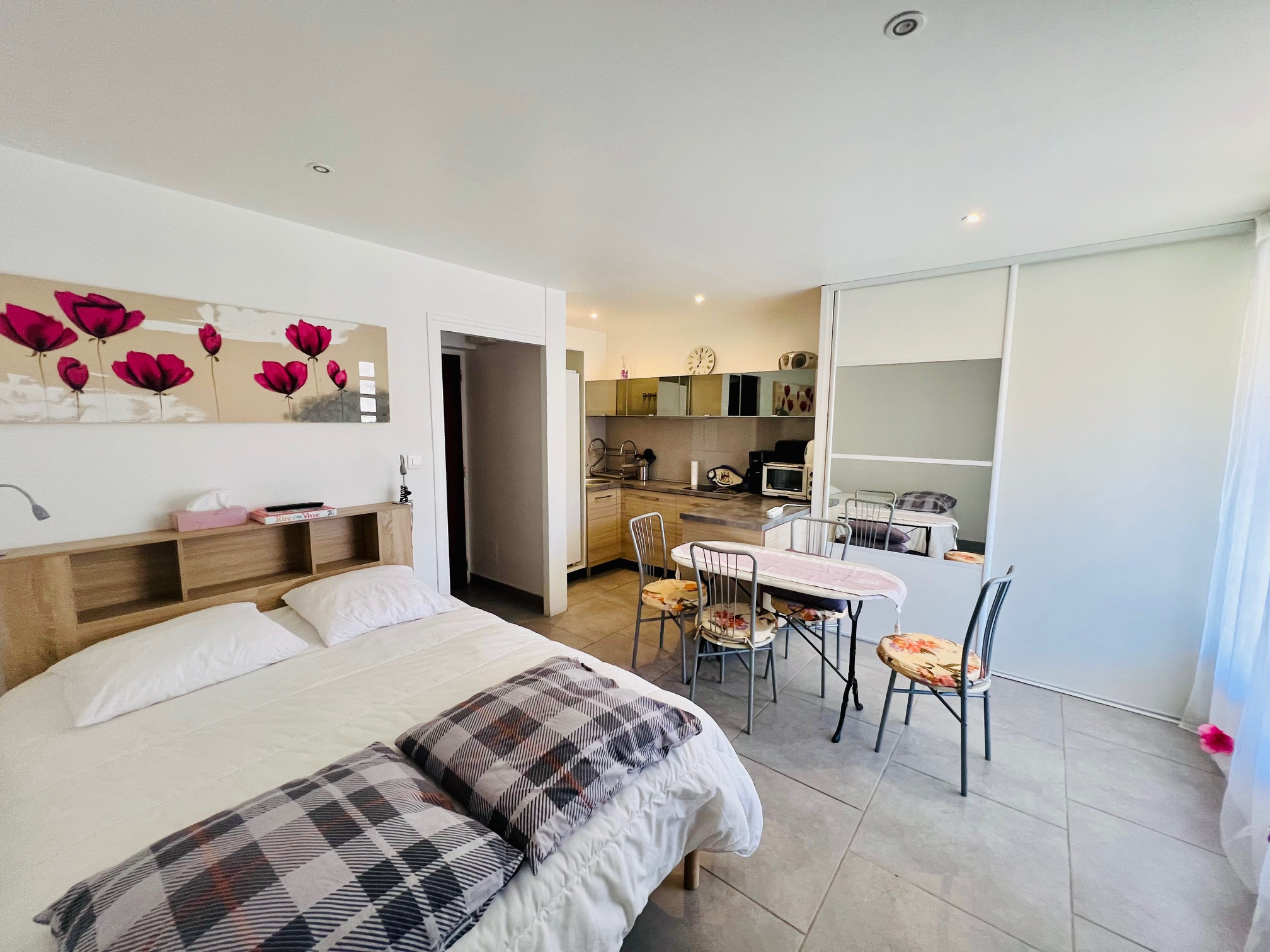 40 RUE DE LA RIVIERA - RESIDENCE LE BRASILIA Bat B N°1 rdc - 66110 AMELIE LES BAINSStudio d'environ 25m² en RDC surélevé - WIFI - Possibilité de location de linge en supplément sur demandeDESCRIPTIF :- COIN CUISINE - évier - réfrigérateur/congélateur - ustensiles usuels - deux plaques cuisson vitro céramique - bouilloire électrique - table et fer à repasser - élément de rangement - cocotte minute - cafetière électrique - aspirateur - grille pain - micro-onde - mini four COIN SEJOUR/CHAMBRE : placards de rangement - 1 lit en 140 - chevet + liseuses - 4 chaises - table - télévision.- Lave-linge - SALLE D'EAU : lavabo - douche - meuble vasque - WC Caution: 180€ à régler sur place à l'arrivée.Animaux autorisés sans supplément Prestations optionnelles à régler sur place et à réserver avant votre arrivée:Ménage: 38€Draps lit double: 25€Drap lit simple:18€Kit serviettes 1 pers:10€Kit serviettes 2 pers:15€