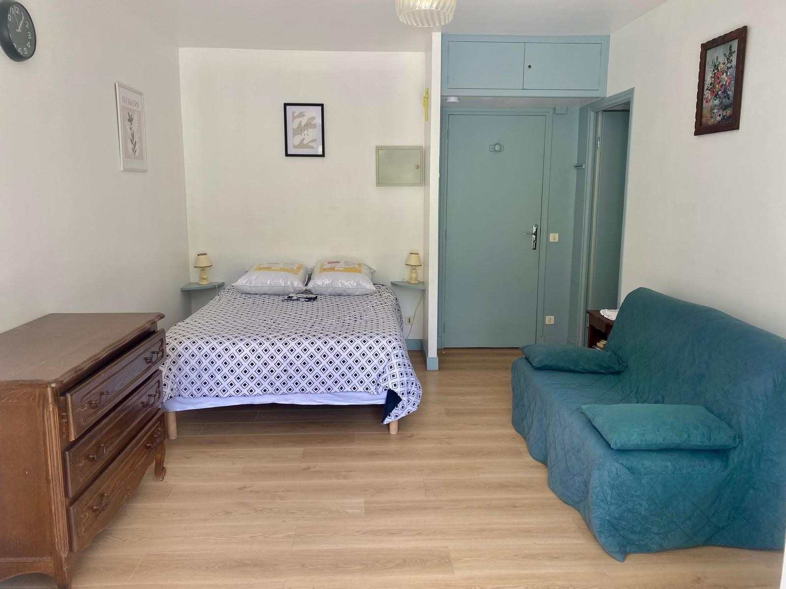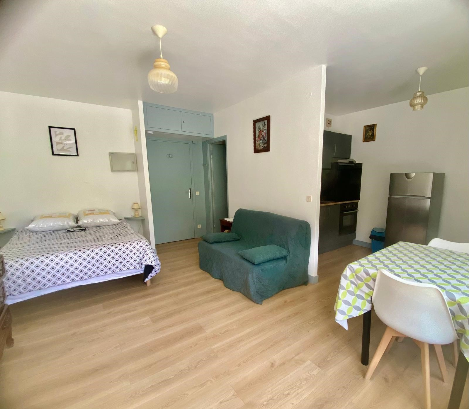 Rce Les Thermes - Rue du Parc - Bat E2 - N°204 - 2e étage Studio pour 2 personnes d'environ 28 m2 + balcon 8 m2 Catégorie confortable - Chauffage individuel électrique Situé à 50 m des cures - Exposé SUD PARKING n°186 - WIFI -COIN CUISINE : évier - réfrigérateur - bouilloire - éléments de rangement - placard - plan de travail - 1 tabouret - Micro-ondes - grille-pain - cocotte minute - miroir - mixeur - table + fer à repasser - cafetière électrique - 1 plaque électrique - COIN SEJOUR/CHAMBRE : lit en 140 - chevets + lampes - 1 chaise - Télévision - table basse - SALLE D'EAU : cabine douche - lavabo - Lave-linge -WC séparé -BALCON : 8 m2 environ avec salon de jardin - STORE manuel EDF en supplément selon la période . DEPOT DE GARANTIE 180 euros à verser à la prise des clés avec solde de la location Tarif semaines : Novembre à Mars : 320€ Avril à Mai : 360€ Juin : 396€ et Octobre : 396€ Juillet à Septembre : 432€ - Réduction de 10% sur 2 semaines - Réduction de 15% sur 3 semaines
